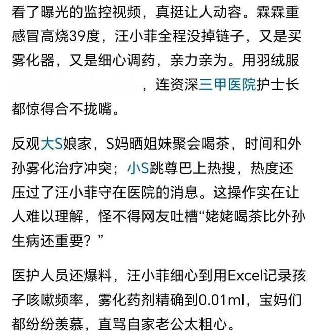反观S妈和小S,孩子生病的同一时间,S妈在喝茶聚会,小S在嗨,现在网上好多人都开始吐槽,S家没一个人疼大S留下的两个孩子。
